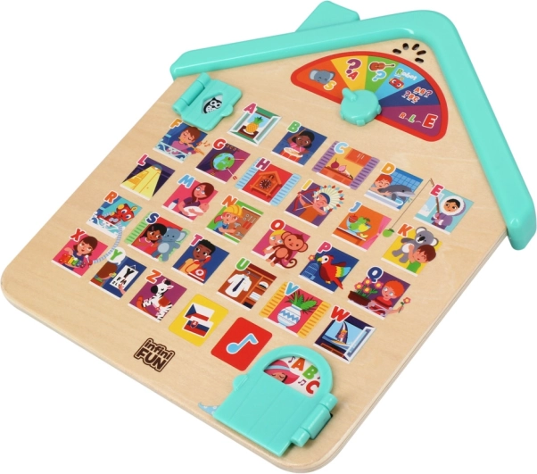 Dieses edukative Holzhaus macht Kinder spielerisch mit dem Alphabet und Grundwörtern vertraut. Dank gesprochener Anweisungen auf Tschechisch und Slowakisch finden sich Kinder leicht zurecht, entdecken Buchstaben und ordnen sie fröhlichen Bildern zu. Die elektronischen Batteriefunktionen bieten Klänge, Melodien und Lernfreude.