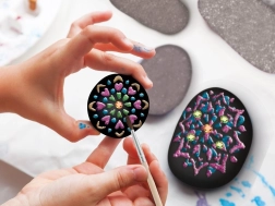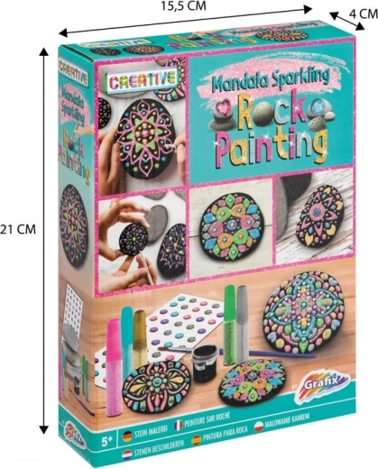 Mit diesem Kreativ-Set gestalten Sie mühelos effektvolle Mandala-Muster und leuchtende Motive auf glatten Steinen. Dank der Kombination aus schwarzem Untergrund, Metallic-Farben und selbstklebenden Steinchen kommen Ihre Dekorationen mit starkem Kontrast und funkelndem Glanz zur Geltung. Das Bemalen von Steinen ist eine großartige Möglichkeit, zu entspannen und zugleich schöne Geschenke oder Accessoires für Wohnung und Garten herzustellen.