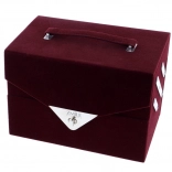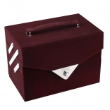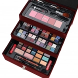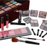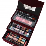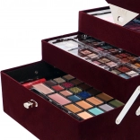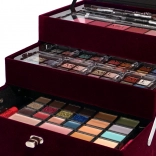 Samtiger Kosmetikkoffer Beauty Case Velvety – dunkel bordeauxrot – insgesamt 74 Zubehörteile. Enthält 32× Lidschatten in 4 kompakten Paletten, 5× Rouge, 3× Augenbrauenpuder, 1× Augenbrauenwachs, 4× cremige Lidschatten, 4× Glitzercreme, 2× Lidschatten-Base, 8× Concealer, 2× Lipgloss, 1× Lippenstift, 1× Mascara, 1× doppelseitigen Kajal, 1× doppelseitigen Lipliner, 1× Rougepinsel, 1× doppelseitigen Lidschattenpinsel, 4× doppelseitigen Applikator, 1× integrierten Spiegel. Dermatologisch getestet, entspricht den strengen EU-Normen.
