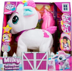 Das Plüschtier Milky ist mit bis zu 20 verschiedenen Geräuschen ausgestattet, die auf Berührung und Manipulation reagieren und realistische Erlebnisse hervorrufen.