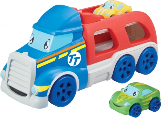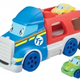 Die Autos sind leicht zu greifen und in klaren, lustigen Farben gestaltet. Der Transporter kann bis zu 4 Autos aufnehmen und hat ein fröhliches Aussehen, das jedes Kind erfreuen wird.