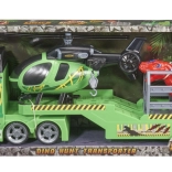 Dieses Set enthält einen Transporter, einen Hubschrauber und einen Dinosaurier, alle mit realistischen Licht- und Soundeffekten.