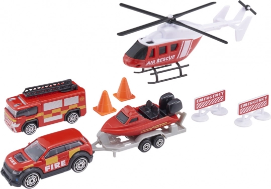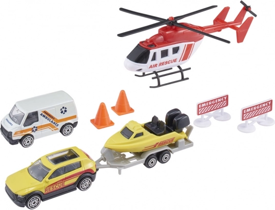 Hubschrauber, Straßenrettung, 4×4 mit Anhängerkupplung, Boot/Jet-Ski mit Anhänger und Notfallzubehör – alles bereit für actionreiche Missionen zu Wasser und zu Land.