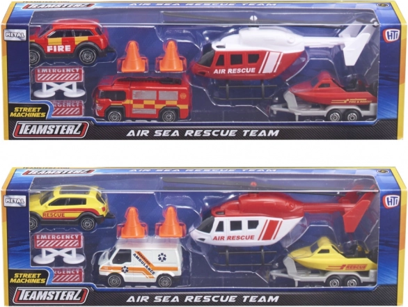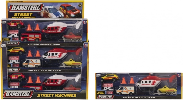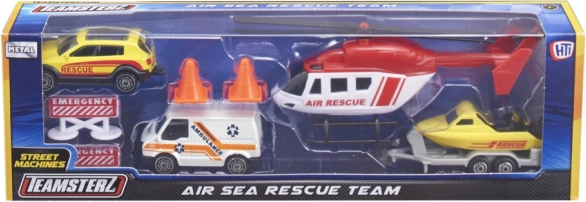 Das Teamsterz-Rettungsteam Air & Sea verwandelt das Kinderzimmer in eine Actionzone voller spannender Missionen. Hochdetaillierte Fahrzeuge mit Metallkarosserie und Kunststoffdetails halten intensivem Spiel stand und rollen dank frei laufender Räder sanft über jede Oberfläche. Der Hubschrauber mit von Hand drehbaren Rotorblättern verleiht jedem Rettungseinsatz den richtigen, realistischen Effekt.