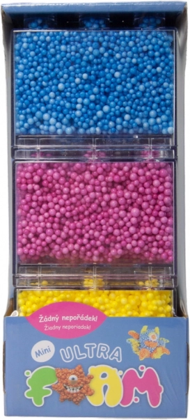 Innovative ungiftige Modelliermasse Ultra Foam in einer Packung mit drei Farben - blau, violett und gelb. Geeignet für Kinder ab 3 Jahren, fördert die Vorstellungskraft, trocknet nicht aus und hinterlässt keine Unordnung.