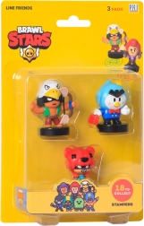 Das Set enthält drei Sammlerfiguren zum Thema Brawl Stars in lebendigen Farben, verpackt in einer gelben Blisterverpackung.