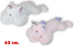 Ein niedliches Plüsch-Einhorn in liegender Position begeistert kleine und große Fans magischer Tiere. Es ist 62 cm lang, angenehm weich und in den Farben rosa oder weiß erhältlich – ideal als Kuscheltier und als Deko fürs Kinderzimmer.