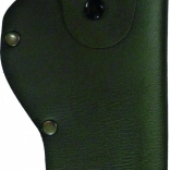 Das Set enthält ein hochwertiges schwarzes Lederholster mit Metallnieten zur Verstärkung und einem Knopfverschluss für sicheren Halt der Waffe.