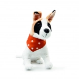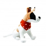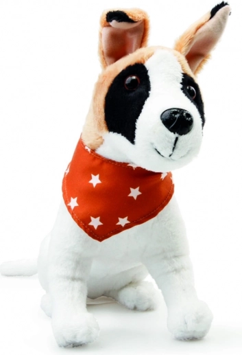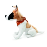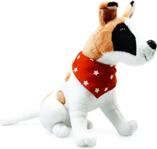 Der Plüschhund besteht aus einem äußerst weichen und angenehmen Material, das zum Streicheln einlädt.
