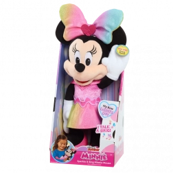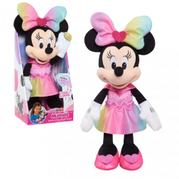 - Interaktiver Spielspaß: Minnie führt in ihrem glitzernden Regenbogen-Outfit mit passender leuchtender Schleife eine beeindruckende Show auf.