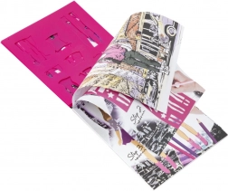 Zum Set gehören 36 Blätter mit Figurenvorlagen, 5 Kunststoffschablonen mit Kleidungselementen und Accessoires sowie ein umfangreiches Aufkleberset für die finale Verzierung. Das praktische Format eignet sich für unterwegs und die Schule, die Seiten lassen sich leicht umblättern und dank der Schablonen arbeitet es sich intuitiv.