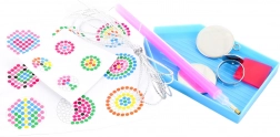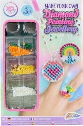 Dieses komplette Schmuckbastel-Set mit der Technik der Diamantmalerei fördert Fantasie, Feinmotorik und Konzentration. Kinder wählen aus 9 Schablonen für Anhänger und 4 Schablonen für Ringe, füllen die Steinchen in die Unterlage und tragen sie mithilfe des beiliegenden Stifts einfach auf die klebrige Oberfläche auf. Das Ergebnis sind funkelnde, einzigartige Accessoires, die sie stolz tragen oder verschenken können.