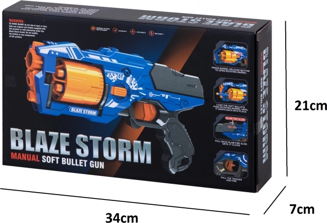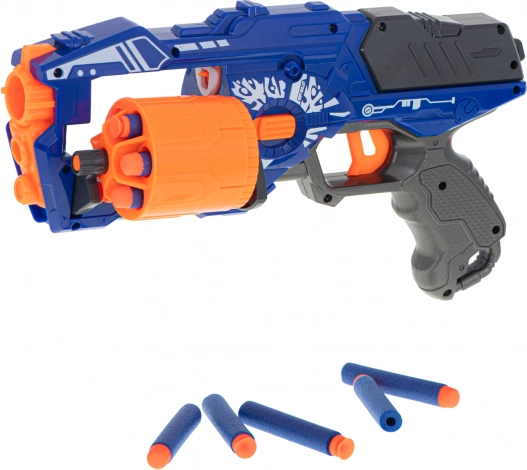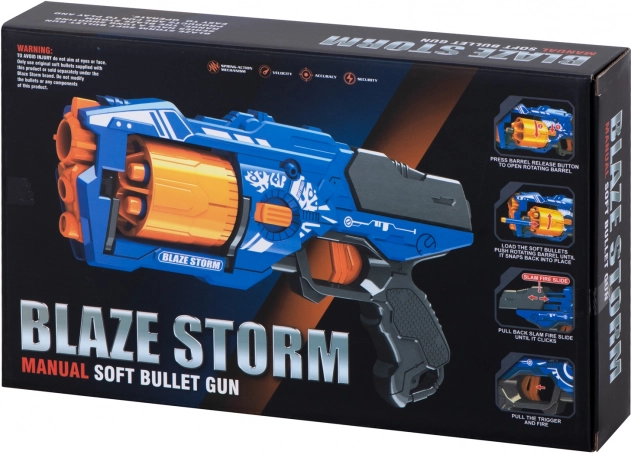 Verschiedene Details in Form von Reliefs und Grafiken, die das Spielzeug an eine Waffe aus einem Computerspiel erinnern, machen es attraktiv für Kinder jeden Alters. Das Spielzeug wird Fans von Computerspielen erfreuen, die ihre Kämpfe in die reale Welt übertragen und gleichzeitig herumlaufen können! Ein solches Draußenspiel fördert die motorische Koordination und hat einen positiven Einfluss auf die körperliche Gesundheit Ihres Kindes. Die Pistole motiviert zu aktiver Freizeitgestaltung im Freien. Blaze Storm ist ein großes Spielzeug, das Ihrem Kind stundenlangen Spaß bietet. Trotz seiner Größe ist es nicht schwer, sodass die Handhabung einfach und unterhaltsam bleibt. Das Spielzeug bietet einen erheblichen Vorteil gegenüber dem Gegner. Es schießt nicht nur schnell und präzise, sondern auch aus großer Entfernung. Gewehre erfordern keine Batterien. Es reicht, das Trommelmagazin mit Pfeilen zu füllen, die Waffe durch Zurückziehen des Verschlusses zu laden und abzuschießen.