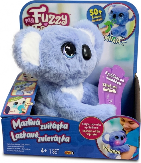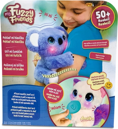 Entdecken Sie den Zauber des interaktiven Plüschtieres Koala Eda aus der Reihe My Fuzzy Friends. Dieser kuschelige Freund reagiert auf Berührung und Interaktion auf mehr als 50 verschiedene Arten, einschließlich Geräuschen und Bewegungen. Eda hat spezielle Gelenke, mit denen sie den Kinderarm umarmen und sich anschmiegen kann. Sie können die Koala streicheln, kitzeln, füttern, ihr die Nase abwischen und sogar beim Einschlafen helfen.
