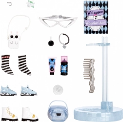Inklusive praktischem Standfuß und einer Sammlung an Accessoires, mit denen du originelle Szenen erstellen und die Puppe im Regal präsentieren kannst.