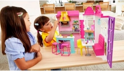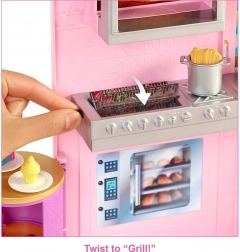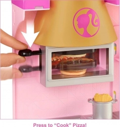 Kinder können Teil des Geschehens im Barbie Restaurant sein, wo sie der Barbie Puppe (*nicht im Lieferumfang enthalten*) beim Bestellungen aufnehmen und bequeme Sitzplätze für Gäste bereitstellen helfen können. Mit sechs Spielbereichen gibt es viele Möglichkeiten für fantasievolle Geschichten.