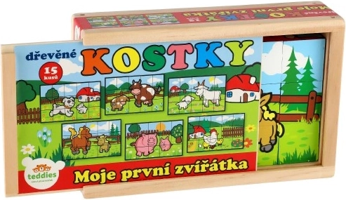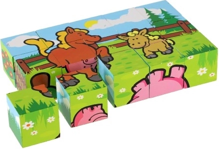 Holzbausteine mit bunten Bildern verschiedener Haustiere sind ein großartiges Werkzeug für die Entwicklung von Kindern. Bei richtiger Anordnung erscheint eines der sechs Bilder, was logisches Denken und Fantasie bei den Kleinsten fördert. Beim Stapeln und Umstoßen von Türmen verstehen Kinder das Prinzip des Gleichgewichts und der Grundlagen von Ursache und Wirkung.