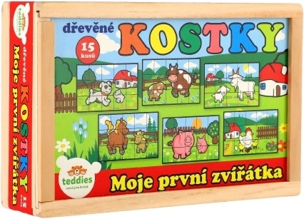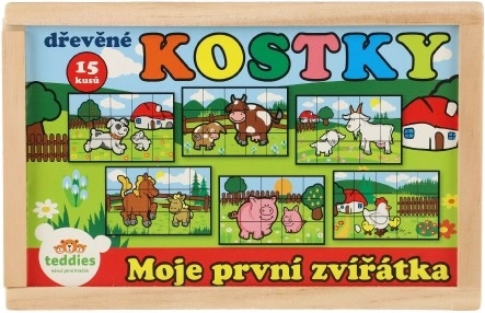 Holzbausteine mit bunten Bildern von Haustieren sind die ideale Wahl für die kleinsten Kinder. Sie helfen, logisches Denken, Fantasie und Feinmotorik zu entwickeln.