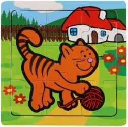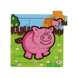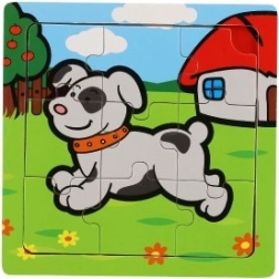 Das Puzzle besteht aus hochwertigem Holz, das Haltbarkeit und ein angenehmes Gefühl beim Handhaben bietet. Neun Teile sind auf einer Holzplatte mit gefräster Kante platziert, was das Puzzeln erleichtert und hilft, die Teile an Ort und Stelle zu halten.
