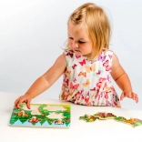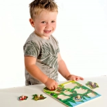 Entdecken Sie den Zauber des ersten Puzzles für die Kleinsten: ein Holzsteckpuzzle mit Griffknöpfen und sechs Waldtieren. Fördert Feinmotorik, Hand-Auge-Koordination und Formerkennung. Die robuste Holzplatte mit Rahmen hilft, dass die Teile immer leicht an ihren Platz passen.