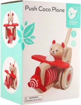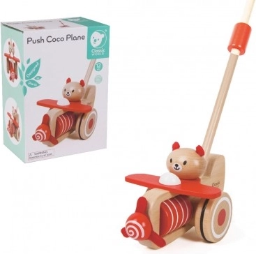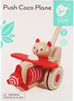 Der Drewnieschieber Flugzeug Coco von Classic World ist das perfekte Spielzeug für Kleinkinder, die ihre ersten Schritte machen. Es benötigt keine Batterien und fördert die Vorstellungskraft Ihres Kindes, während es stundenlangen Spielspaß bietet. Wenn das Flugzeug geschoben wird, beginnt sich der Bär Coco zu bewegen und das Propeller dreht sich, wodurch ein amüsantes Geräusch erzeugt wird. Geben Sie Ihrem Kind die Möglichkeit, ein kleiner Pilot zu sein.