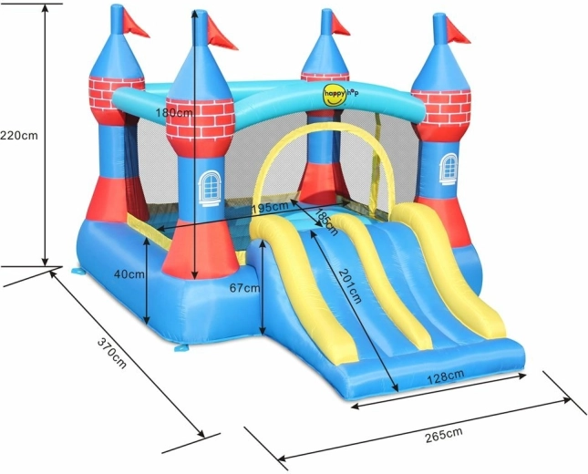 Die Happy Hop Hüpfburg mit Doppelrutsche ist eine hervorragende Wahl für den Outdoor-Spaß von Kindern im Alter von 3–10 Jahren. Sie bietet eine große Sprungfläche und zwei breite Rutschen, die den Spielfluss erhöhen und mehreren Kindern gleichzeitig Spaß ermöglichen. Hochwertige Materialien und eine stabile Verankerung sorgen für Sicherheit und eine lange Lebensdauer.