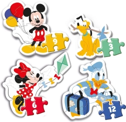 Entdecken Sie den Spielspaß mit dem beliebten Helden MICKEY MOUSE! Das Set CLEMENTONI Mein erstes Puzzle 4-in-1 bietet vier unterschiedliche Puzzles mit steigendem Schwierigkeitsgrad (3, 6, 9 und 12 Teile), mit denen Kinder spielerisch Konzentration und Geduld trainieren. Extra große und robuste Teile liegen gut in der Hand und halten dem täglichen Spielen stand.