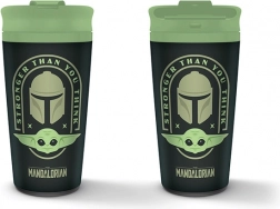 Edelstahl-Reisebecher mit Mandalorian-Motiv, Fassungsvermögen 450 ml, ideal für Star Wars-Fans und Reisen.