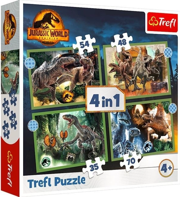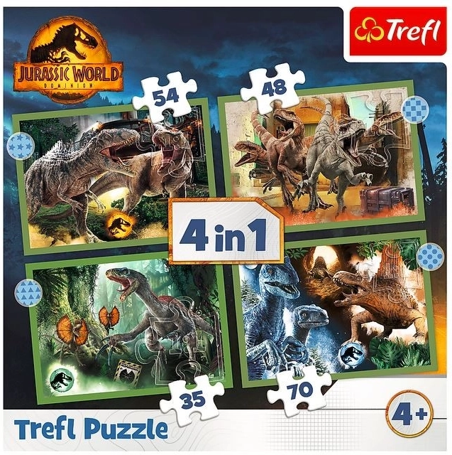 Tauchen Sie ein in die faszinierende Welt der Dinosaurier mit diesem 4-in-1-Puzzle-Set, entworfen für alle Fans des Films Jurassic World. Nach dem Zusammensetzen erwarten Sie vier beeindruckende Bilder, jeweils im Format 285 x 205 mm.