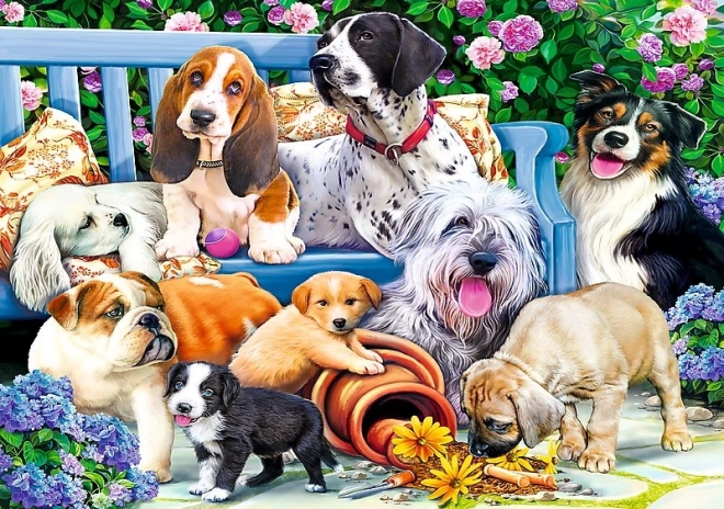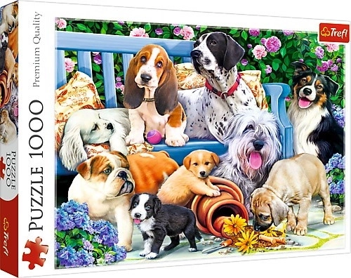 Puzzle Hundepark 1000 Teile ist eine ideale Möglichkeit, die Freizeit zu verbringen. Dieses Set enthält ein Bild von Hunden im Garten mit den Maßen 683x480 mm nach Fertigstellung.