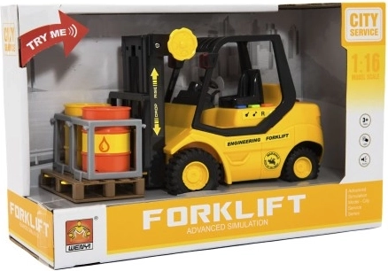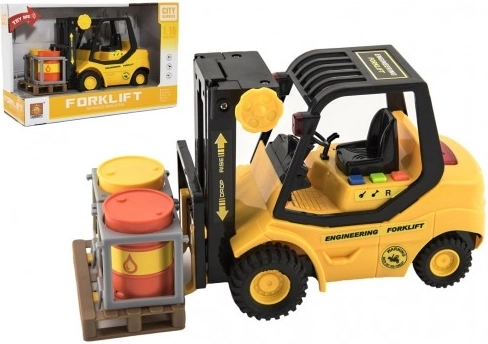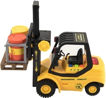 Gabelstapler aus Kunststoff 23cm mit Schwungrad auf Batterie mit Sound und Licht in Box 29x19x12cm