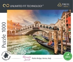 Tauchen Sie ein in die romantische Atmosphäre Venedigs mit dem Bild der berühmten Rialtobrücke bei Sonnenuntergang. Die TREFL UFT Serie ermöglicht das Kombinieren mehrerer Puzzle-Motive zu einer großen Collage – einfach, präzise und ohne Einschränkungen. Ein spezieller Stanzschnitt stellt sicher, dass die Teile kompatibler UFT-Sets passgenau ineinandergreifen und das fertige Bild sicher transportiert werden kann, ohne zu zerfallen.