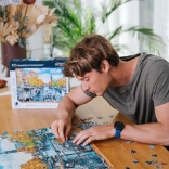 Die spezielle Stanzung sorgt dafür, dass jedes Teil eine einzigartige Form hat und perfekt ineinandergreift. Das zusammengesetzte Bild lässt sich bequem transportieren, ohne auseinanderzufallen. Der erstklassige Druck auf starkem blauem Karton hebt architektonische Details und die Farbigkeit der Szene hervor. Außerdem überzeugt die umweltfreundliche Verpackung ohne äußere Kunststofffolie und mit kompostierbarem Innenbeutel.