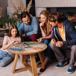 So geht’s: Nach dem Zusammensetzen die Randteile abnehmen, die Mittelstücke nach Wunsch verbinden und die Ränder wieder hinzufügen. Durch das Verbinden von vier 1500-Teile-Puzzles entsteht eine originelle „Sechstausender“-Collage.