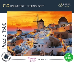 Entdecken Sie den Zauber des griechischen Oia bei einem romantischen Sonnenuntergang und holen Sie sich ein Stück Mittelmeer-Atmosphäre nach Hause. Das TREFL Unlimited Fit Technology (UFT) System ermöglicht es Ihnen, mehrere Puzzle-Motive zu einer großen Mosaikfläche zu verbinden – die Grenzen bestimmen Sie selbst.