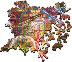Zweiseitiges Holzpuzzle aus der TREFL Wood Craft Origin Premium-Serie bietet ein einzigartiges Erlebnis mit Teilen in Form von berühmten Gebäuden, Tieren oder Fortbewegungsmitteln, die sich dank präzisem Laserschnitt einfach zusammenfügen lassen.