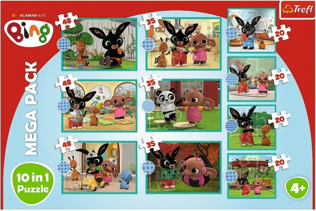 Wir präsentieren Ihnen Mega Puzzlepackung Bing 10in1, die für alle Enthusiasten des beliebten Märchens Bing entworfen wurde. Die Packung enthält 10 unabhängige Puzzles, die beim Zusammenfügen bunte Bilder ergeben.