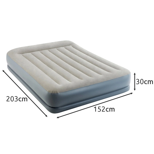 Entdecken Sie zuverlässigen und bequemen Schlaf, wann immer Sie ihn brauchen. Das aufblasbare Bett INTEX Pillow Rest Mid-Rise kombiniert die robuste Dura-Beam-Konstruktion mit Fiber-Tech-Fasern für stabile Unterstützung ohne Durchhängen und eine angenehme Velours- (beflockte) Oberfläche für ein weiches Gefühl. Die Doppelbettmaße 203 × 152 × 30 cm bieten komfortablen Platz für zwei Personen.