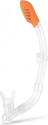 Der obere Spritzschutz (Splash Guard) begrenzt das Eindringen von Wasser in das Rohr, während die leuchtend orangefarbene Spitze die Sichtbarkeit an der Oberfläche erhöht. Der praktische Clip zur Maskenbefestigung hält den Schnorchel in der richtigen Position. Ideal für Freizeit-Schwimmen und Schnorcheln von Kindern ab 8 Jahren.