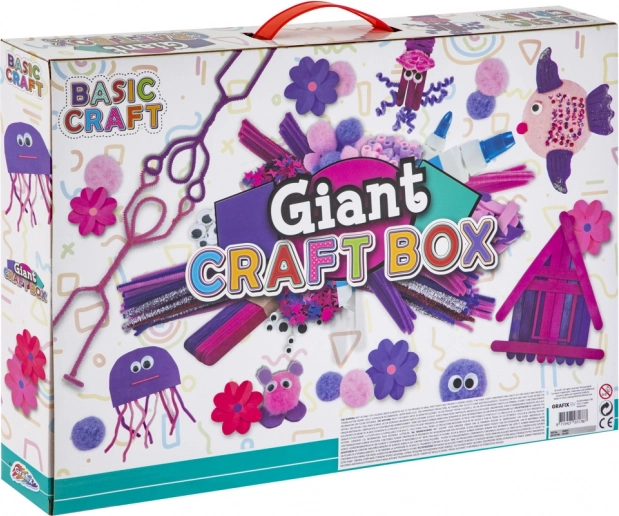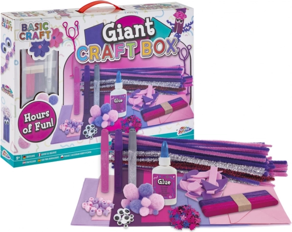 Mit dieser rosa Kreativbox der Marke Basic Craft erschaffen Kinder mühelos Papierblüten, Häuschen aus Eisstielen, Tiere und Figuren. Das Set fördert Fantasie und Feinmotorik und bringt kreativen Spaß für freie Momente, Kurse und Schulprojekte.