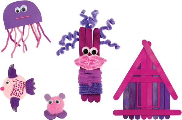 Gestalten Sie Fische, eine Qualle, ein Häuschen oder fröhliche Figuren aus Eisstielen und Drähten. Inspirierend, unterhaltsam und im Handumdrehen fertig.