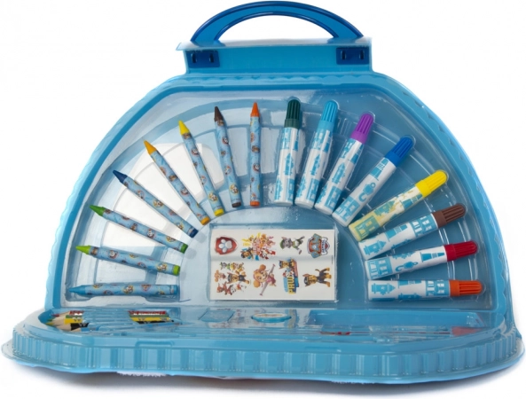 Metallisches Malset-Köfferchen Paw Patrol – enthält Filzstifte, Wachsmalstifte, Buntstifte, Wasserfarben, Bleistifte, Lineal, Radiergummi, Anspitzer, Pinsel und Aufkleber.