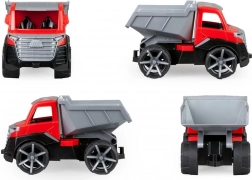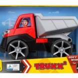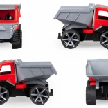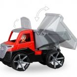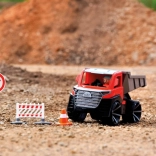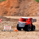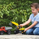 Die kippbare Mulde ist mit einer Sicherheitsverriegelung ausgestattet, die ein unbeabsichtigtes Auskippen der Ladung verhindert – ideal für realitätsnahes Bauspiel.
