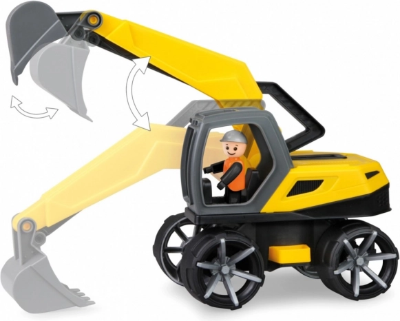 Robuster Kinderbagger aus der Serie TRUXX 2 für Spielspaß drinnen und draußen. Er bietet drehbares Oberteil mit Sicherung, einen voll funktionsfähigen Arm mit Schaufel, der über einen Griff bedient wird, sowie eine Fahrerfigur in einer leicht zugänglichen Kabine. Hergestellt aus unbedenklichem Kunststoff in der Tschechischen Republik.