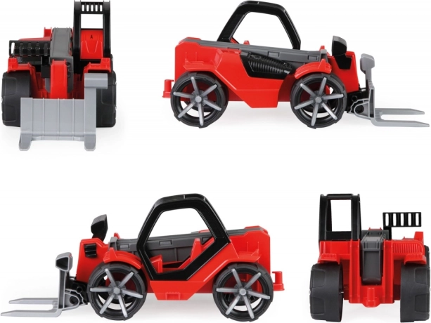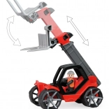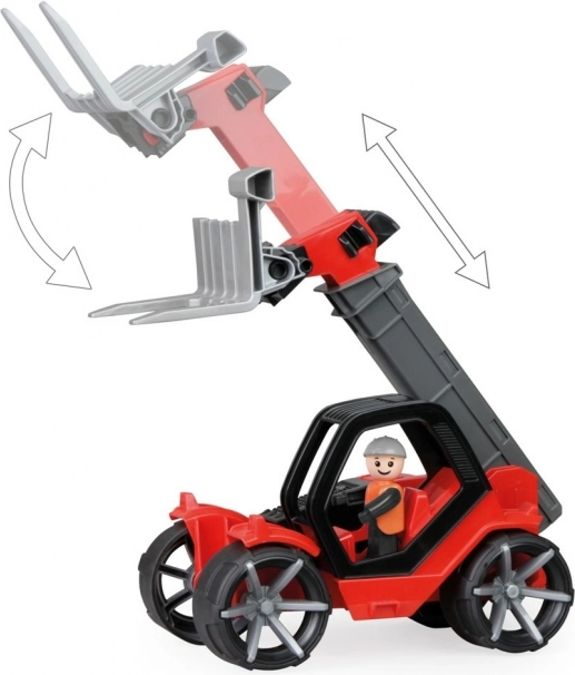 Dieser Teleskoplader besteht aus hochwertigem Kunststoff und bietet eine stabile Konstruktion, die intensivem Spiel standhält. Dank gummierter Räder mit leisem Lauf ist er auch ideal für das Spielen im Innenbereich. Mit der aufklappbaren Kabine und der aktiven Figur können Kinder leicht in die Rolle echter Baumaschinenführer schlüpfen.