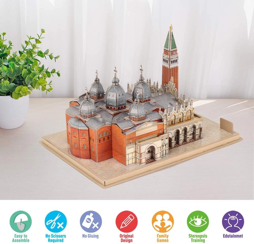 Entdecken Sie den Zauber Venedigs mit dem detailreichen Bausatz des Markusplatzes. Das 3D-Puzzle CUBICFUN aus der National Geographic Edition besteht aus speziellem, mehrschichtigem Schaum, der mit laminiertem, bedrucktem Papier überzogen ist und so für schöne Farben und lange Haltbarkeit sorgt. Die Teile sind vorgestanzt – einfach herausdrücken und gemäß Anleitung zusammensetzen.