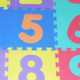 Praktischer Schaumteppich aus miteinander verbindbaren Teilen mit den Maßen 30 × 30 cm – ideal für Kinderzimmer und Spielecke. Die Teile haben eine geriffelte Oberfläche für bessere Stabilität und enthalten herausnehmbare Zahleneinsätze, die Lernen und Spaß zugleich fördern.