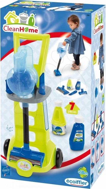 Dieser Reinigungswagen aus der Reihe Ecoiffier ist mit einem Stielstaubsauger mit drei verschiedenen Aufsätzen, zwei Reinigungsmitteln und einem Wagen mit zwei Rädern ausgestattet, die das Versetzen des gesamten Sets an jeden Ort erleichtern.