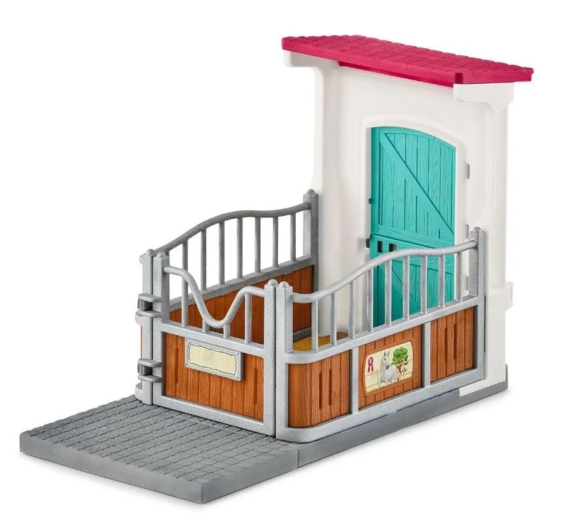Der Pferdestall kann mit dem größeren Set Pferdestall (42551) und weiteren Zubehörteilen der Horse Club Serie verbunden werden.