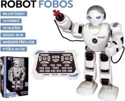 Der Roboter FOBOS ist ein unterhaltsamer, robuster und leicht zu bedienender Begleiter für kleine und größere Entdecker. Nach dem Einschalten leuchten seine Augen, es ertönen Weltraumgeräusche und der Roboter beginnt auf Tschechisch zu sprechen. Mit der Infrarot-Fernbedienung lässt er sich in Aktion steuern, oder man wagt mit ihm die ersten Schritte im Programmieren – er speichert bis zu 50 Befehle und spielt sie auch ohne Fernbedienung ab.